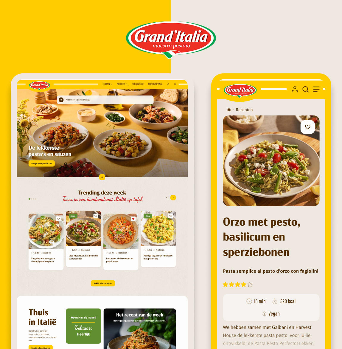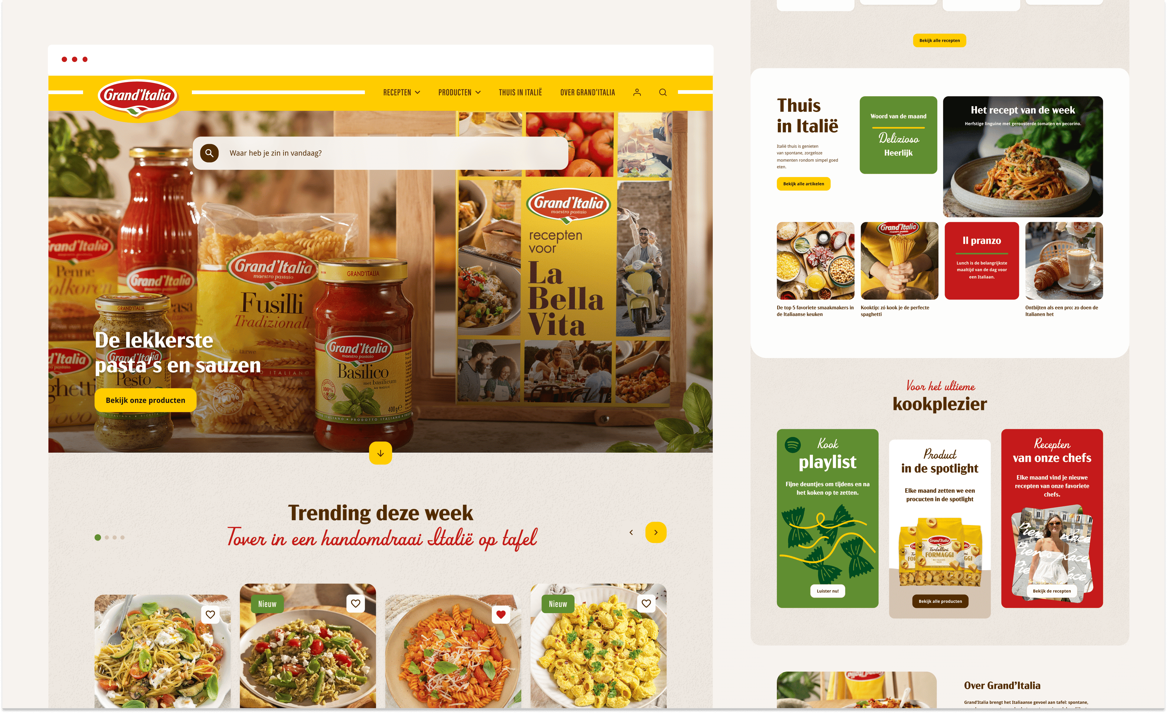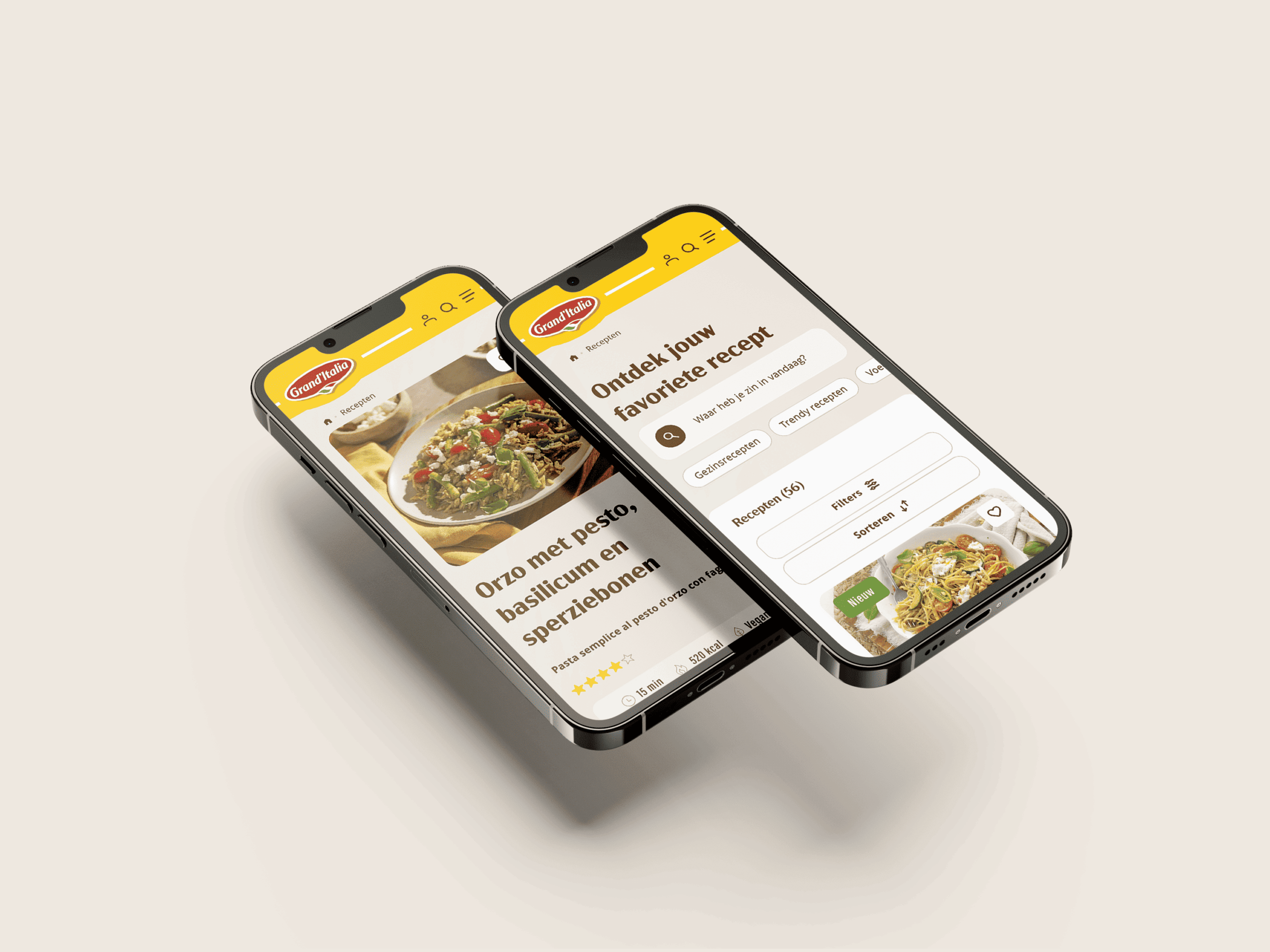 For Grand’Italia, one of the Netherlands’ most loved pasta brands, we created a fresh digital presence that balances tradition with modern usability. As the UX/UI designer, I focused on building a warm and intuitive experience that reflects the brand’s authentic Italian roots.