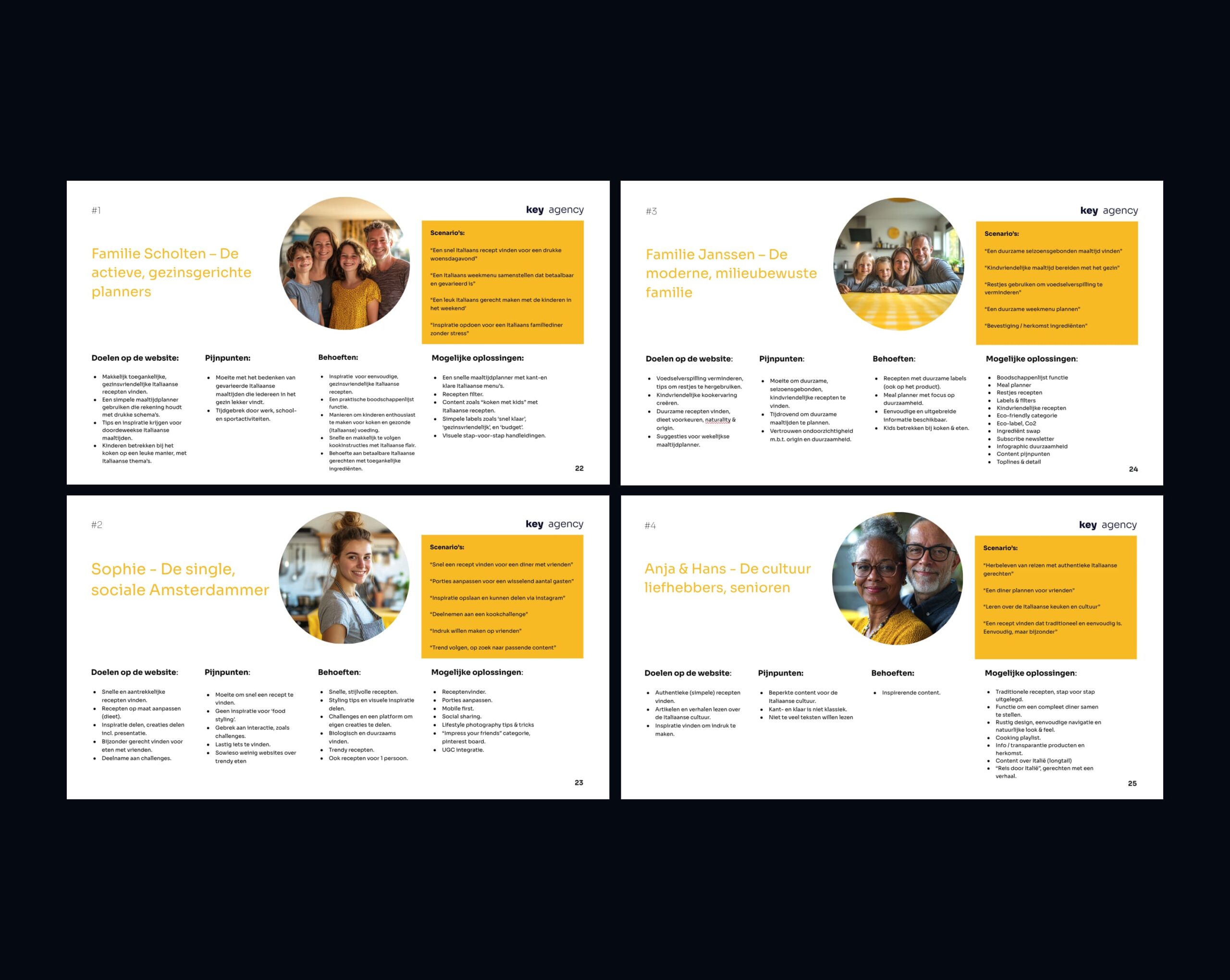 Before starting the design, we looked at how people interact with food and recipe websites. We ran a benchmark analysis, created user personas, mapped customer journeys, and built a sitemap to understand user needs and define a clear structure.
